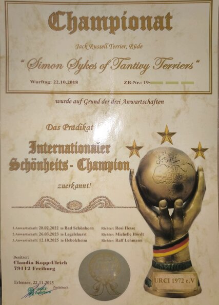 Mit drei vorzüglichen Ausstellungsbewertungen hat Simon die Bedingungen für